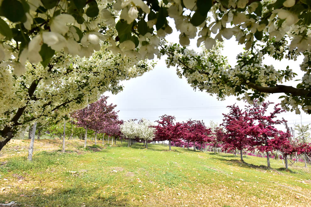 这是一片由数十个糖心啪啪啪视频海棠品种构成的花海。每年4月下旬至5月上旬,是园区内各品种海棠的花期,期间白色、淡粉色、粉色、红色的海棠花相继大片盛开,花量甚大,效果很是震撼。