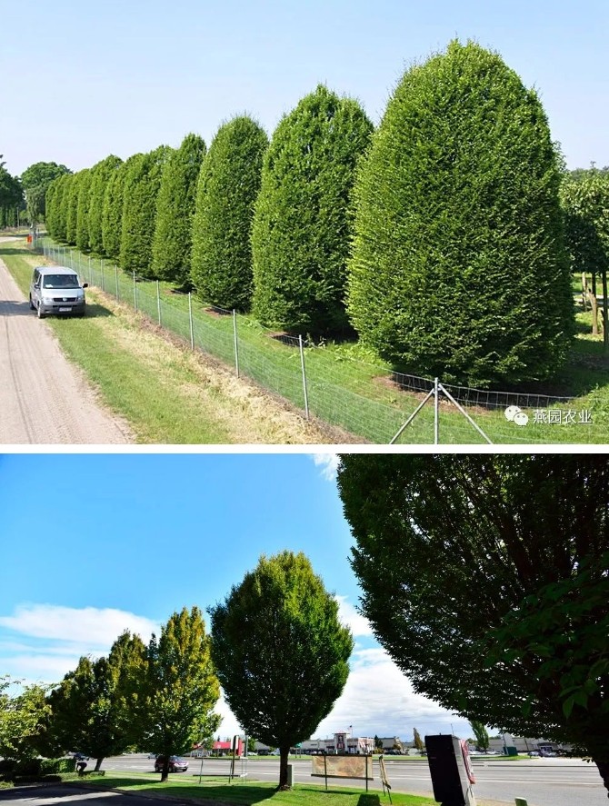 那可能会有人问“是不是这个树种不好养,不适应国内的环境呢?”但学术性的研究已证明欧洲鹅耳枥适应性强、病虫害少易养护、抗风能力强、对土壤要求不严、移栽成活率高、极耐修剪,对城市环境也有良好的耐受性,在中等至差的城市环境中可良好生长。尤其在园林景观的建造上还可利用其耐修剪的特性,修剪成绿屏、挡风绿墙用于庭院空间的软分割,以及修剪成各种立体几何图形来增加园林绿化景观的趣味性与独特性。是国内华东、华中、华北地区和多数沿海城市园林景观绿化升级及荒山造林的理想树种。
