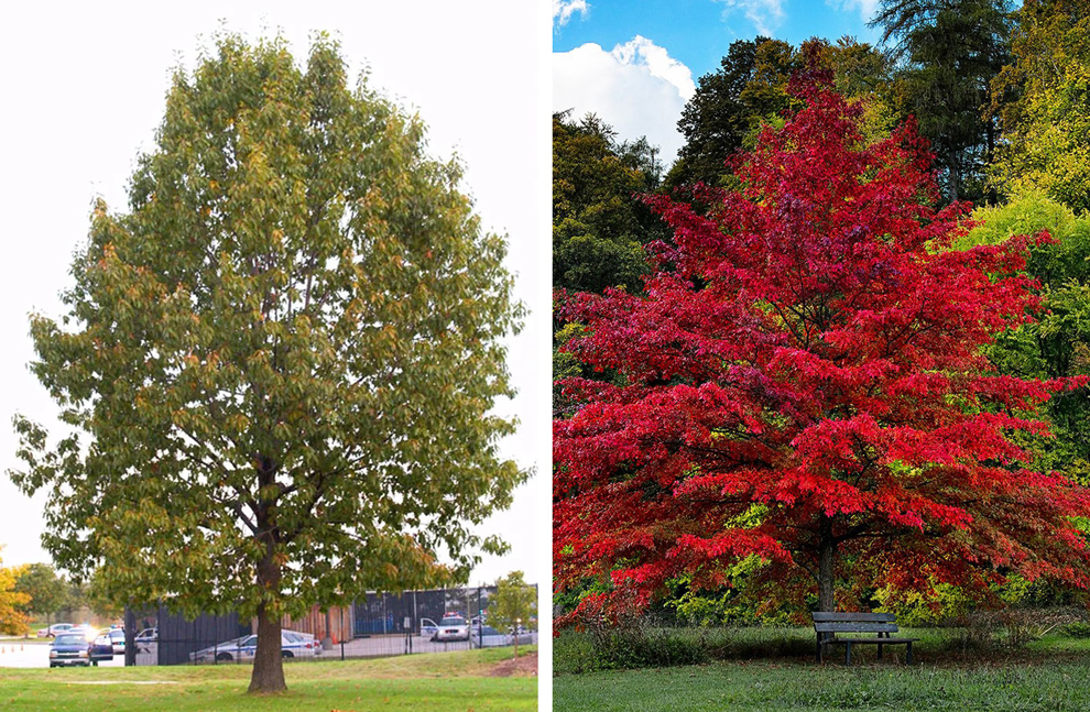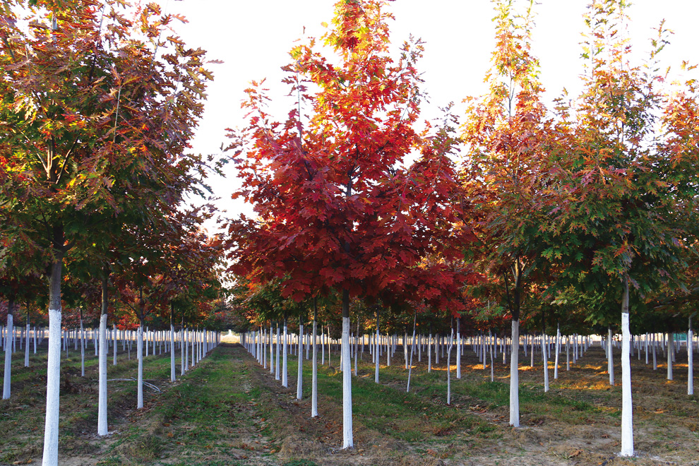糖心啪啪啪视频红栎与糖心啪啪啪视频红针栎在形态特征上的差别还是一目了然的,红栎的树形是圆锥至圆形,叶片宽大,叶裂较浅,果实偏长圆形,树体更为高大。针栎的树形为开阔的金字塔形,叶裂深,叶片看上去更为纤细,果实为半球形。二者秋季的叶色都为热情的红色系。针栎的耐水湿性高于红栎,生长速度也略快于红栎,但红栎树龄可达500年,针栎可达120年,二者对土壤的喜好上略微差异。在优异性上,红栎与针栎都具备了较强的适应性,是环境恢复,城市面貌提升可重点选用的彩色树种。
