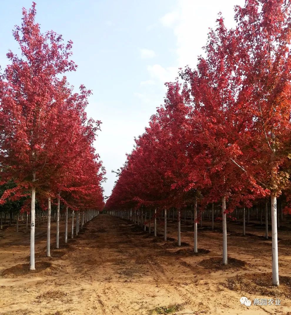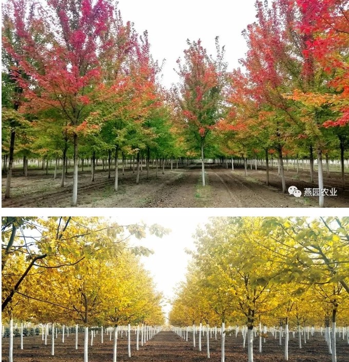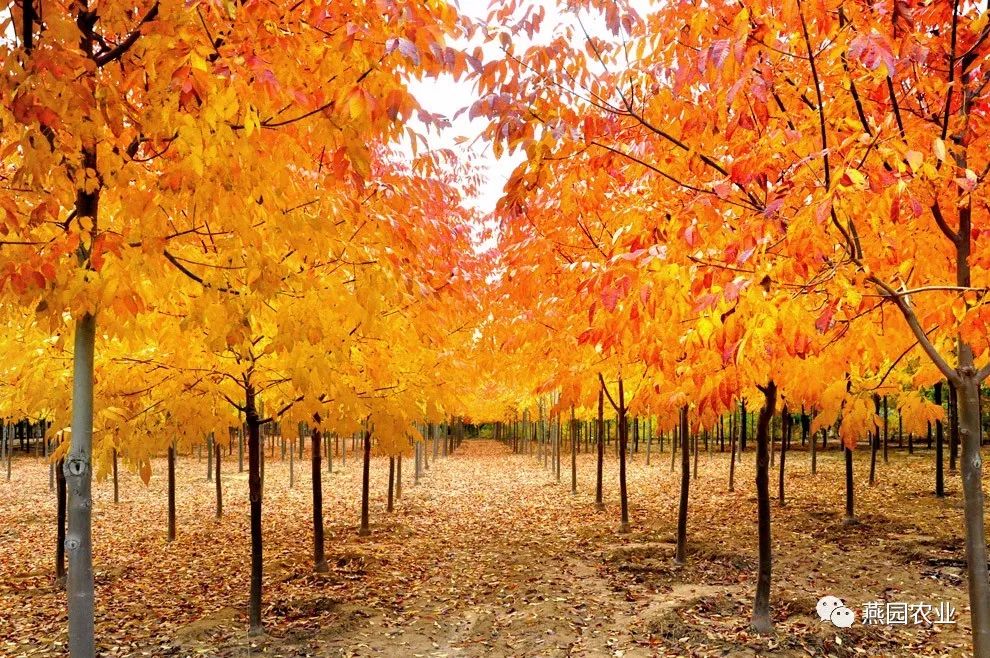 泰安基地位于泰安市宁阳县八仙桥街道(扫下方二维码,获取自驾导航定位)。基地中栽植有欧洲鹅耳枥、美国红枫、美国秋紫蜡、彩叶豆梨、凤凰梣叶槭等彩叶树种。都是赏秋季节中值得一观的彩叶苗木。尤其欧洲鹅耳枥,雄伟的树姿和卵形翠绿的叶片筑成了一道道壮观艳丽的“黄金墙”。亲临观赏后的感觉定是比小编形容的壮丽百倍。