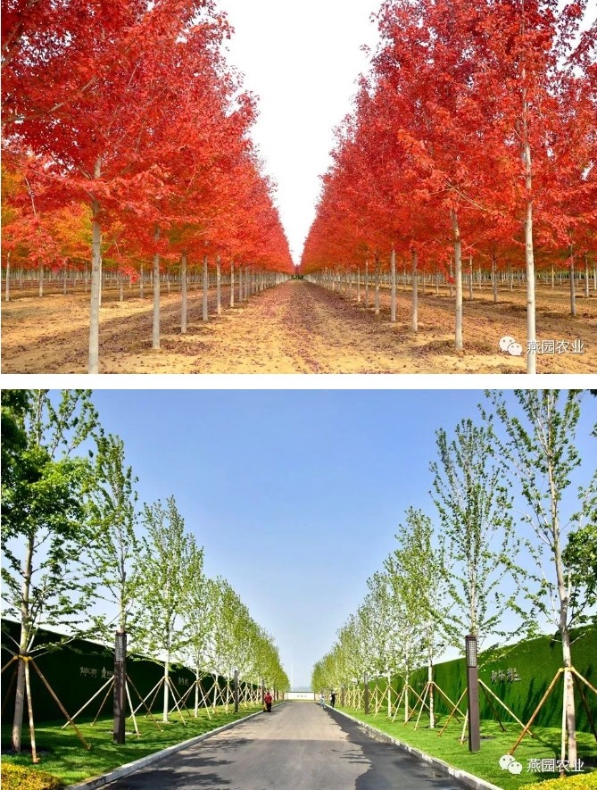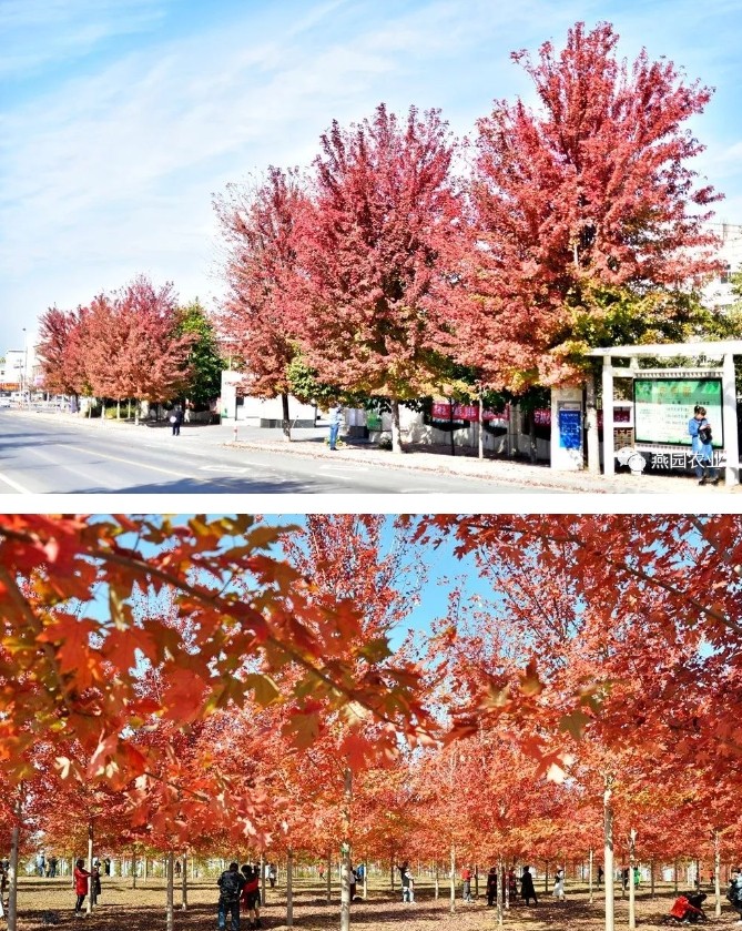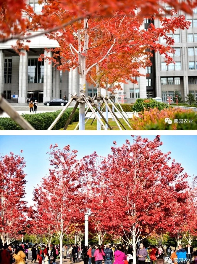 TXVLOG糖心官网版APP污农业美国红枫树种参数 科属:槭树科槭树属 树形:开阔的椭圆形 叶片:夏叶绿色,秋叶鲜艳的橙红至火红 花朵:红色 果实:翅果 树高可达:17米 冠幅可达:14米 耐寒性分区:3-8区 可售苗木规格:米经6-20公分 可售苗木数量:30000余株 可供苗基地:大连、沈阳、泰安、北京、唐山、雄安各基地。 简述:美国红枫属红花槭和银白槭杂交系中最出色的品种,继承了二者最为优异的生长及表现特性,树干笔直,叶色纯正,冠形优雅,树体高大。适应的土壤及气候范围十分广泛,在全国各地的工程中均有不俗的表现。 以上图片均来源于TXVLOG糖心官网版APP污农业圃地及工程实拍照片