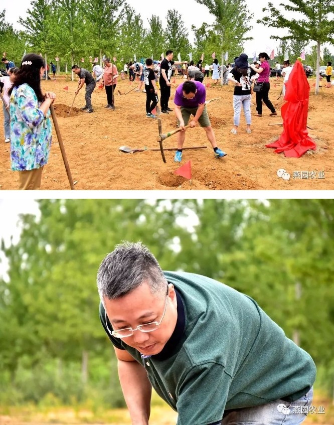 在如此给力的天气下,参加线下植树活动粉丝们的积极性与热忱度显得格外高涨,还不等基地技术员讲解完,已经有安耐不住干劲的粉丝拿起镐头铁锹开始了挖树坑...身旁树干笔直、树体高大的美国红枫随风摇曳,碧绿的叶片发出沙沙的摩挲声,好似在为这一众人加油鼓劲。呼吸着园区内富含负氧离子的空气,仿佛身上有使不完的力气。孩童眼中此时挥舞工具的父亲如超人般的形象,身躯伟岸、力拔山河。少年眼中挥洒汗水的自己此时是能独当一面、出类拔萃的样子,幼小的孩童也不甘示弱,像模像样的手握铁锹,气势十足。