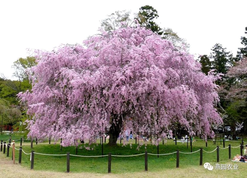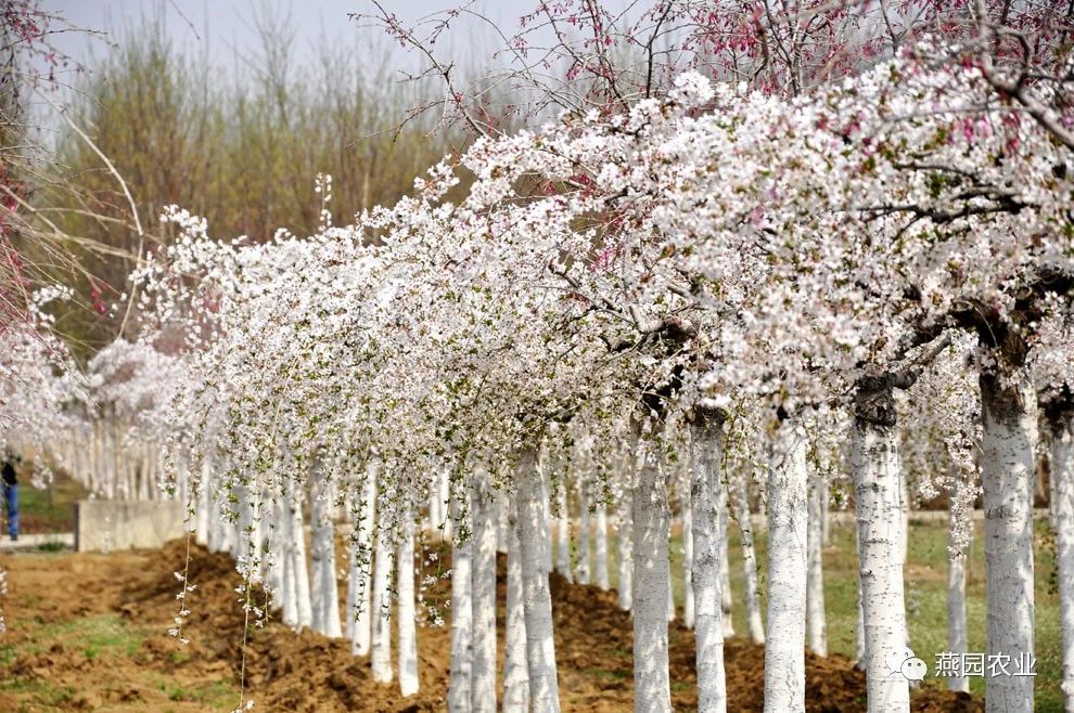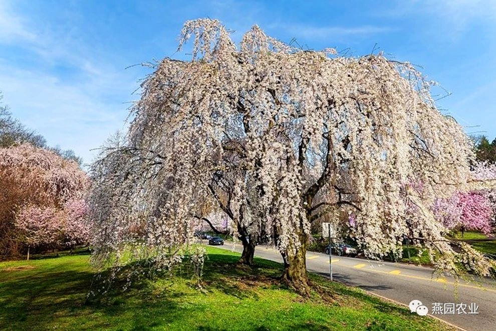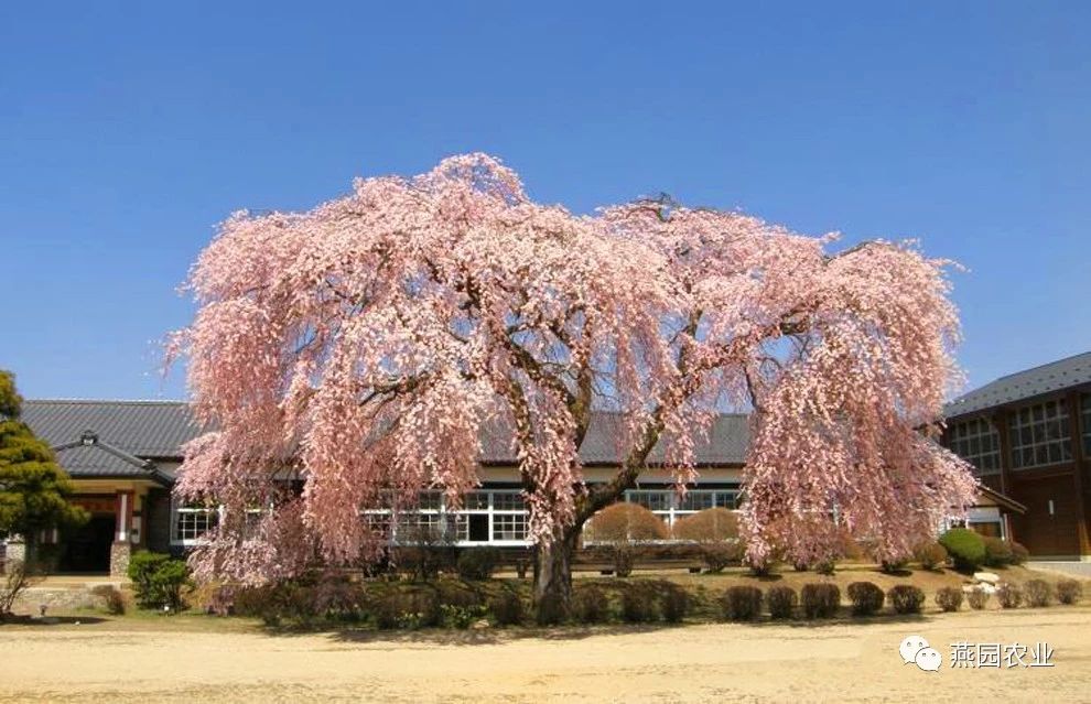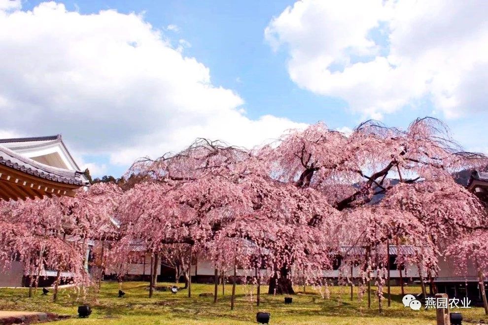 樱花起源于中国,距今已有2000多年的栽培历史,由盛唐时期传至东瀛,而后发扬光大备受欢迎。垂枝樱花花期为4月中下旬,花色鲜艳亮丽,枝叶繁茂旺盛,花先叶开放,着花繁密,花色粉红或雪白,是早春重要的观花树种,被广泛用于园林观赏。经园艺工作者多年选育,垂枝樱花表现最佳,可孤植或群植于庭院、公园、草坪、湖边或居住小区等,也可列植或和其他花灌木合理配置于市政、园林道路两旁或片植作专类园。因此垂枝樱花是各类观光园、景区彩化、高校美化、市政行道等常用观花彩叶树种。