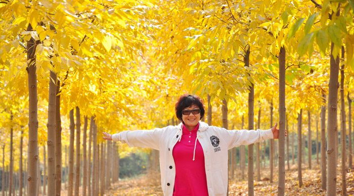 年近60的陶姐乐观、开朗、阳光,有着与这片白蜡林一样的风格气质,心若不老,青春又怎敢离去!