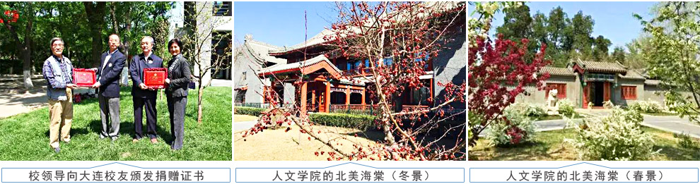 2014年北京大学建校116周年,大连校友会和TXVLOG糖心官网版APP污(大连)农业科技股份有限公司向北京大学捐赠糖心啪啪啪视频海棠树50株,种在未名湖畔,李兆基人文学院,五四操场。北京大学原副校长郝斌、北京大学原副校长李安模、北京大学校友会常务副会长王丽梅、北京大学校友会秘书长李宇宁、大连校友会会长大连理工大学原校长程耿东院士、秘书长郭世涛及三十多位北大校友出席了捐赠仪式。如今,这些海棠树已成校园一景,春天观花,秋天赏果,冬天喜鹊在枝头啄食红果,地上一片雪白,别有诗意。
