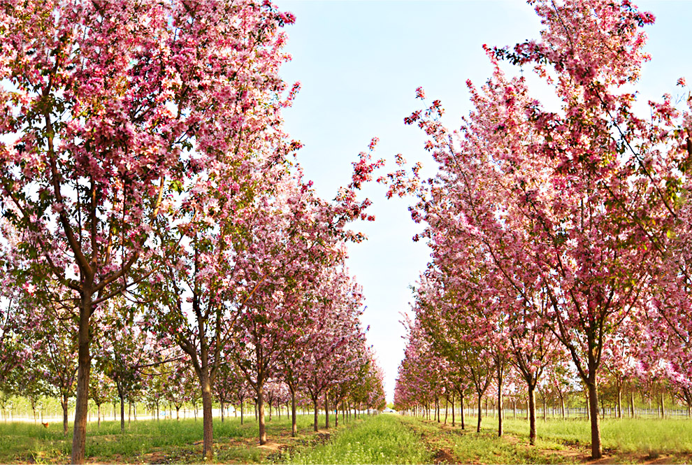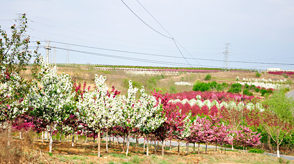 二十里堡高速口出,右转,第一个红绿灯路口左转,沿刘大线行驶3.3公里,左转进入茶广线行驶700米,路边盛开的海棠花就是你想看的风景,纵情花海吧!