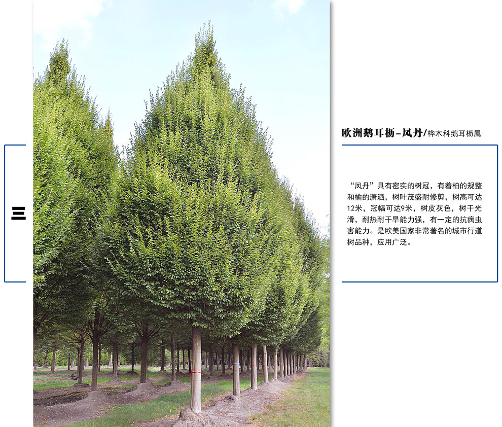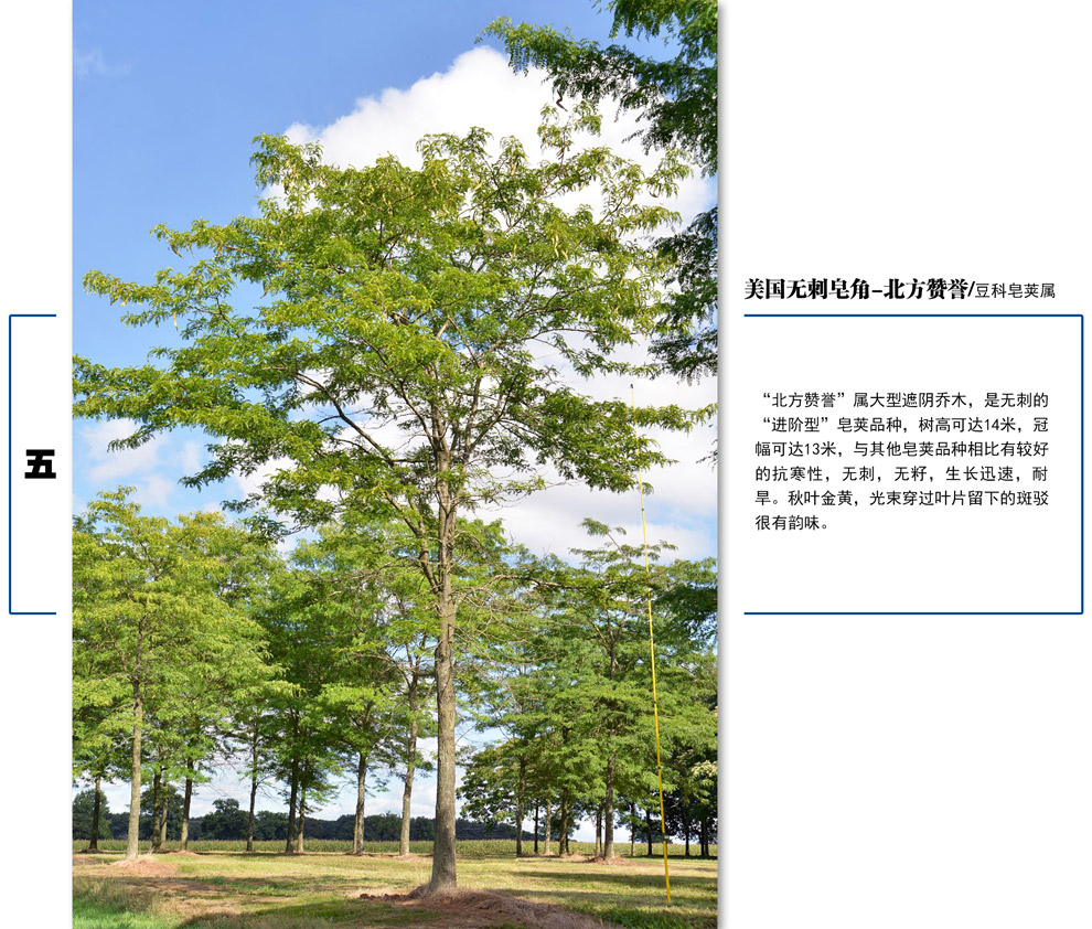 本文综合考虑了树种的观赏性、适应性、最大尺寸、存圃量、深根性、病虫害情况、遮阴效果、树种寿命、生长一致性以及居民体验等因素,列举以下六科七属十个品种,供园林工作者参考: