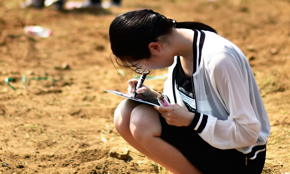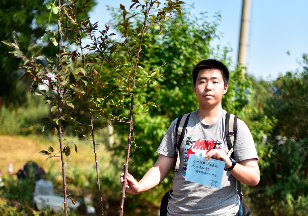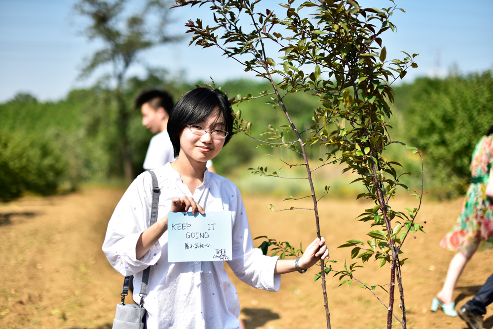 夏日炎热,但新生们依旧神采奕奕。两张卡片,一张鼓励别人,一张写给自己。写给自己的小秘密要塞进瓶子埋到地下;鼓励别人的那些话要挂在树上永久留存。