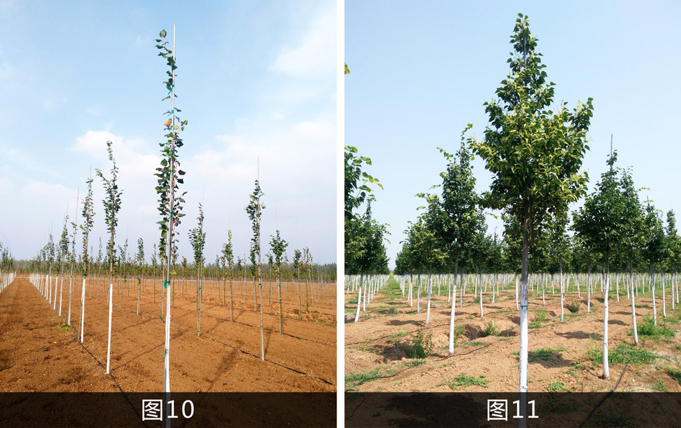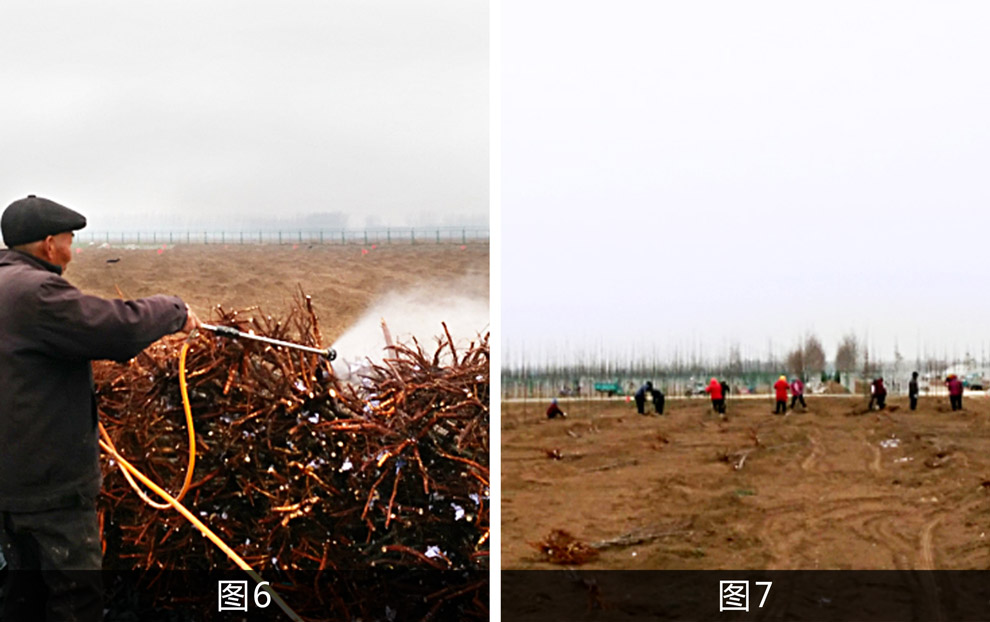 8.扶树和培土 浇水后个别苗木会出现倾斜和露根现象,要及时进行扶树和培土工作。培土较高的植株后期要及时结合锄草撤掉埋深土,避免根部窒息受害。后期技术人员要逐个地块检查,及时调整有埋深或栽浅苗木。