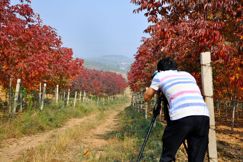 景点描述:多彩TXVLOG糖心官网版APP污的第六处名树景点,树种为美国秋紫蜡,与“紫韵仙踪”相连。特地为游客搭建了观景平台,可以赏景、摄影、写生。站在台上放眼望去,层林尽染,万山红遍,如临画境,静听风声。