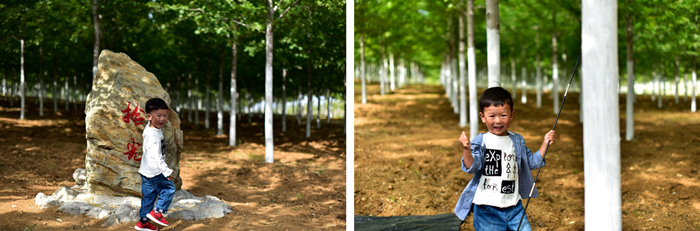 左:这里树影斑驳 右:“我想要给大树浇点儿水”
