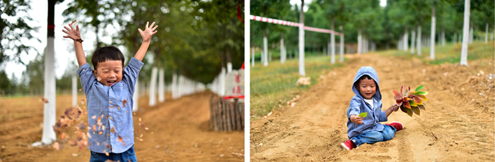 左:在枫树林里自由玩耍 右:“我要去探索新的世界”
