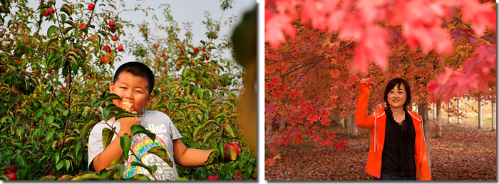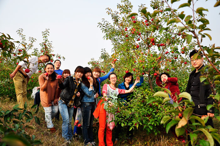 继续前行,便可抵达苹果采摘园,这里依山而建,风光无限。买来的苹果终觉浅,还是自己采摘的最新鲜。挎上篮子,带上头巾和手套,穿梭在大片果树间。精挑细选,最大的,最红的,统统收入篮中。满载而归,丰收的喜悦溢于言表。