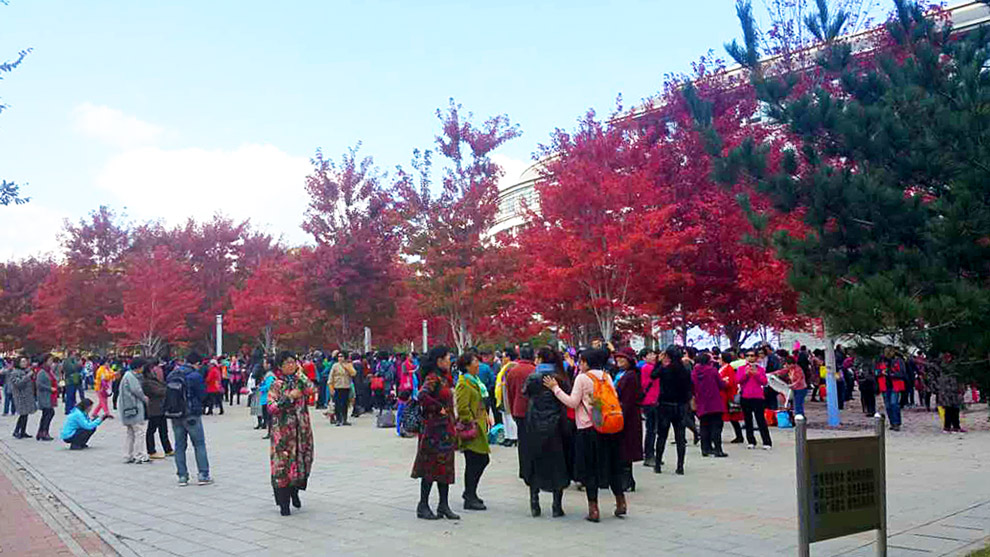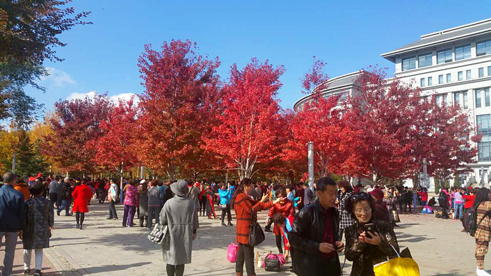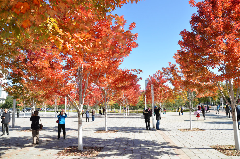 下面三张照片拍摄于2015年秋季,可以看到,那时候林下赏景的人还不是很多,而今年秋季,哈工程红枫林的游客人数绝不亚于大多数景区,这就是彩叶树种美国红枫‘秋火焰’的魅力所在!