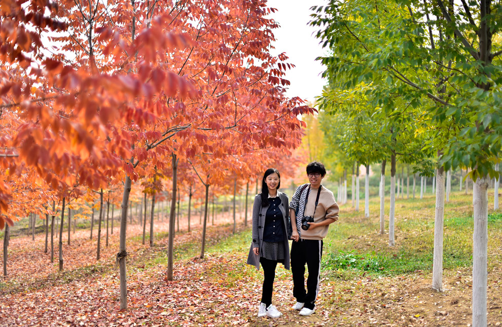 你可以和心爱的人漫步在林间,左手红艳右手苍翠,满目炫彩,微风温柔日光和煦,岁月静好,在一起静静的品味时光。