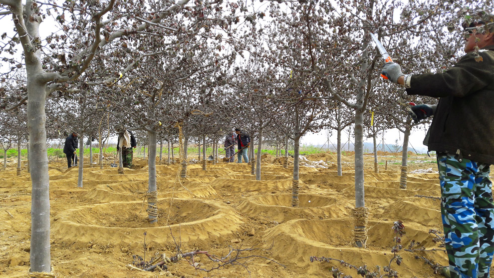 3、树坑围堰部分做的小矮 树坑的围堰要根据树坑的大小确定的,最好做在树坑边上,围堰的高度要达到20厘米以上,这样苗木浇水容易浇透。坡面苗木栽植,由于坡度较大,正常做围堰,土球上半部分浇不到水,所以要在土球的上半部分做成“燕窝”坑,多浇几遍水让土球都能浇透,浇水后有露根、裂缝及时用土盖好。