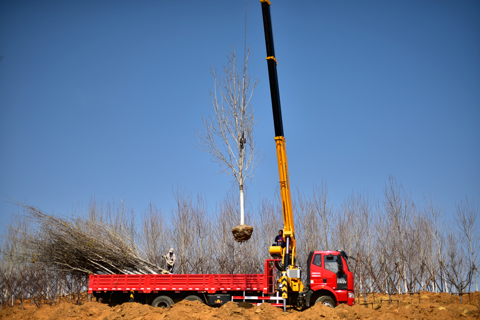 6、乔木“上浆期 ”直接吊树干 乔木“上浆期”有不少施工单位直接吊树干,使不少苗木撸皮和破皮的,导致苗木死亡。所以建议苗木“上浆”时吊栽苗木时一定不能用板带直接吊树干,防止树皮损伤,树皮分离,树冠容易死亡。乔木“上浆期 ”栽运时一定要吊土球,因这个季节苗木树皮与树干分离,开始输送苗木生长的水份和各种营养物质,受力作用下很容易撸皮和损伤。