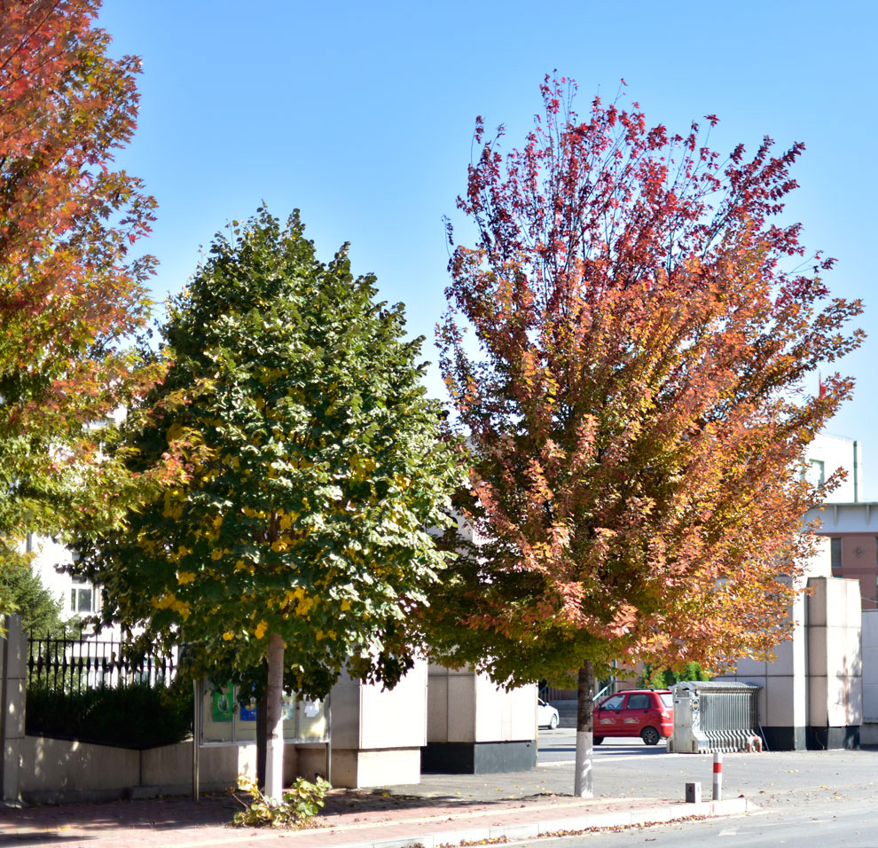 图为大连二十里堡街道应用的银毛椴与美国红枫