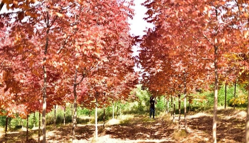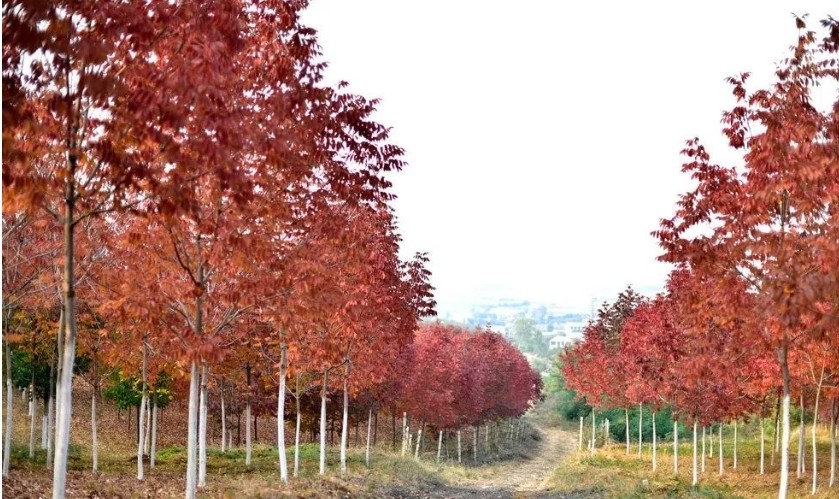 又临近10月了,美国秋紫蜡在每年10月中旬色彩奔腾璀璨、艳丽夺目,将树木景观的魔力发挥出来,其秋季叶色之纯之亮之艳,非常规树种可比,也因此,它才成为白蜡属中具有景观价值的乔木品种。美国秋紫蜡冠大荫浓、树势雄伟、色彩醒目,病虫害少,耐盐耐碱耐污染,是京津冀、江浙沪城市园林建设必不可少的高端彩色苗木品种。