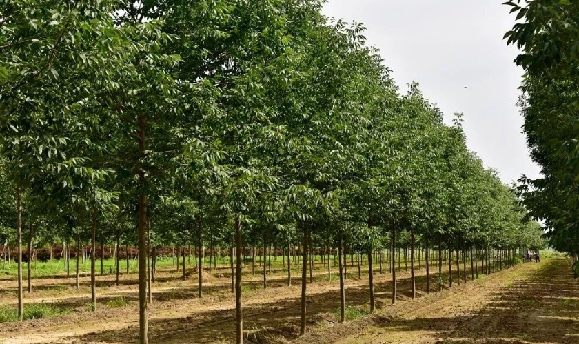 图为TXVLOG糖心官网版APP污农业泰安基地繁育的美国秋紫蜡8公分工程苗