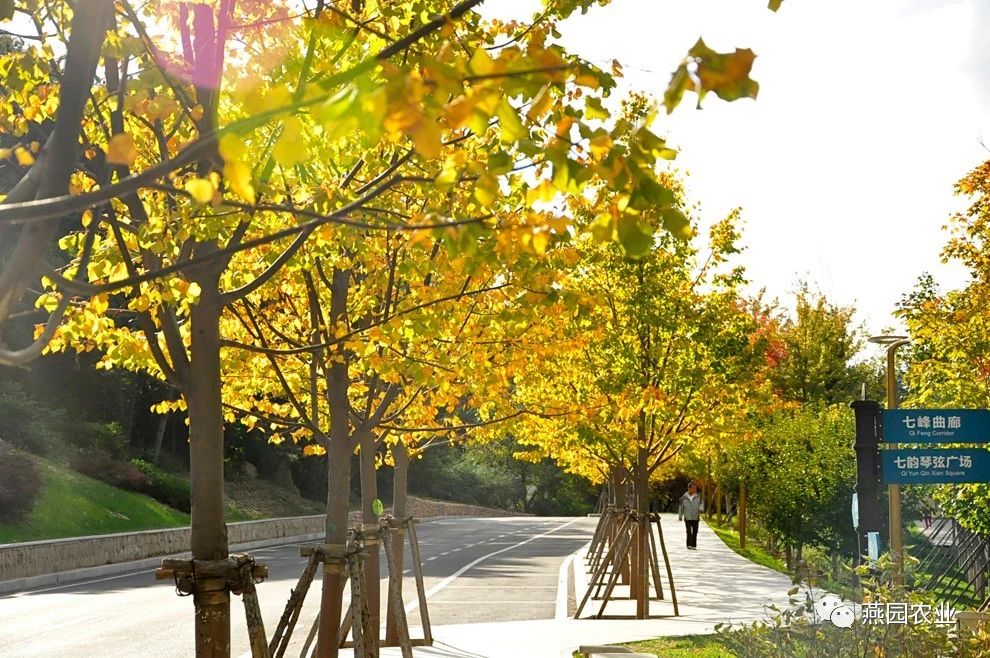 白云雁水里的彩叶树大多是第一年迎秋变色。相信未来几年,这里的秋景会更加绚烂多彩,园中的金桐力大道在秋季也会更加耀眼夺目。