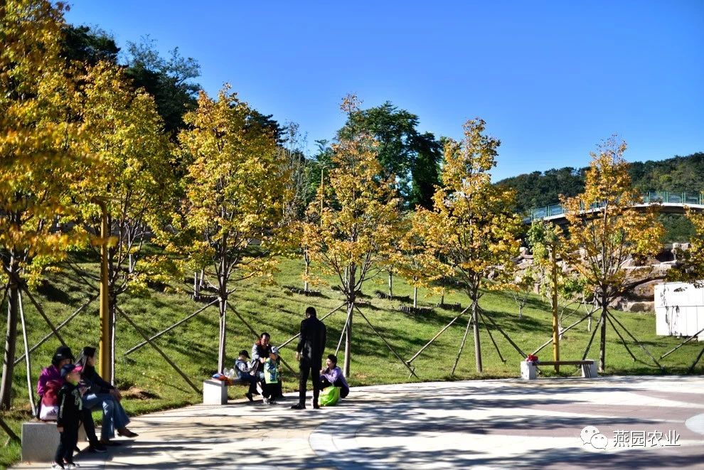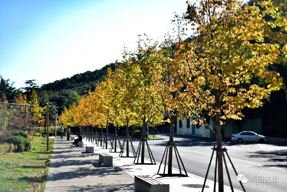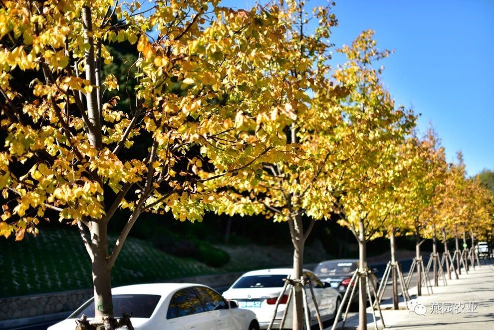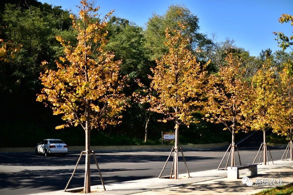 受地区气候、小环境、栽植时间及修剪工作等多重因素影响,白云雁水的金桐力今年提前变色了,较圃地早了半个多月。大连市民也因此可以在天气未冷时,提前感受金桐力的金色风采。 白云雁水随处可见金桐力,主干道、停车场、圆形广场……甲方对金桐力情有独钟,金桐力也确实不负期望,栽植第一年就舒展枝叶、勃勃向上,夏花芳香,秋叶金黄,丝毫没受到缓苗的影响。